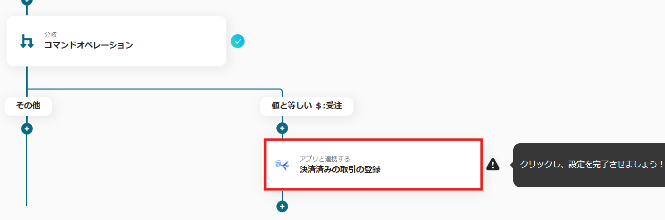 1) フローに戻り、「アプリと連携する 決済済みの取引の登録」のアイコンをクリックします。