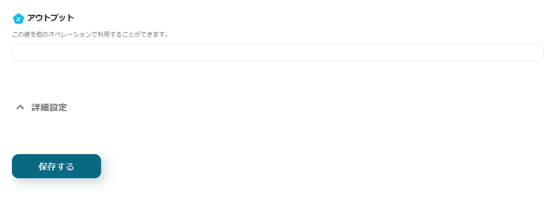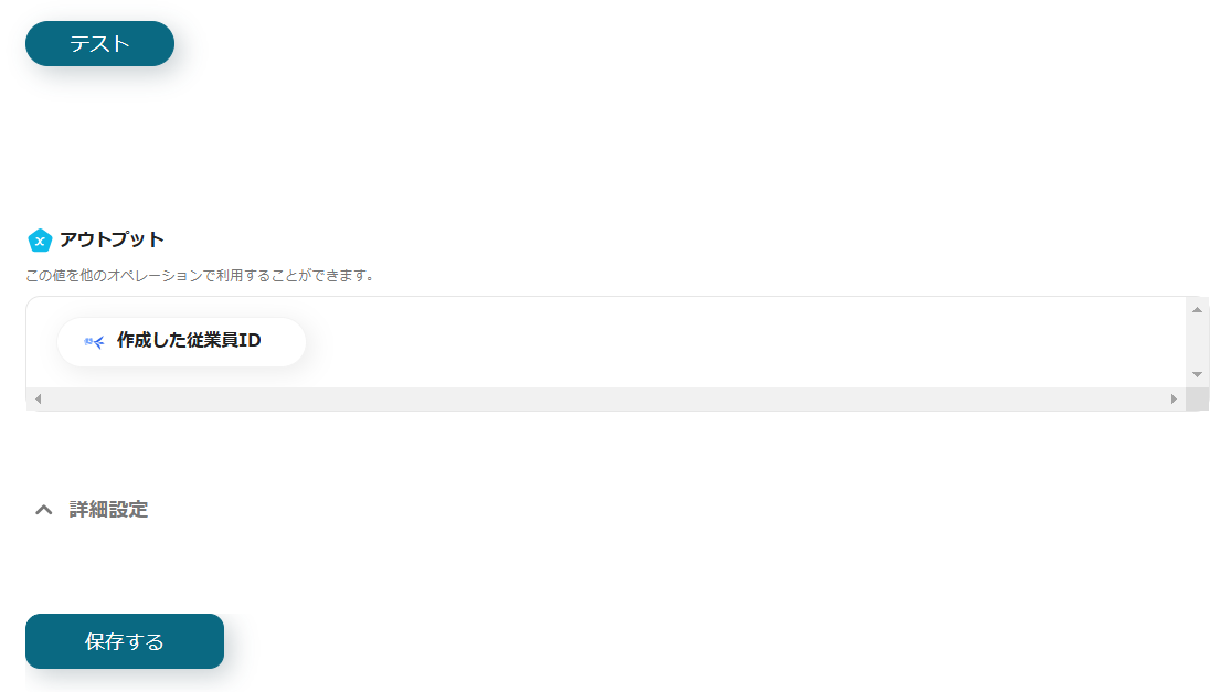 9.テストが成功したら、アウトプットに取得した情報を追加して保存します。