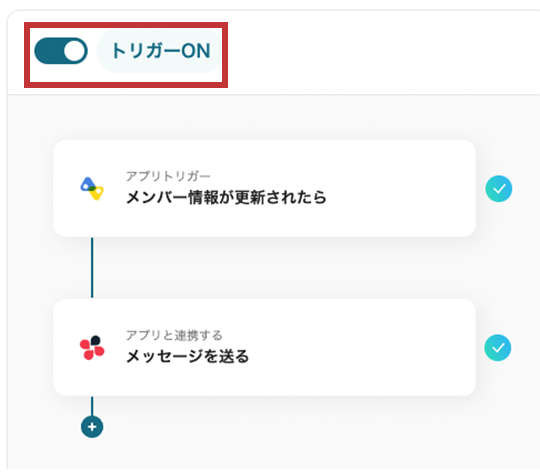 最後にアプリトリガーのスイッチを【ON】にすると設定完了です。この画面での操作以外にも、プロセス一覧の左上にあるトリガースイッチで操作できます。