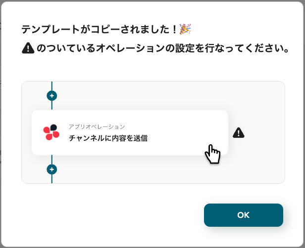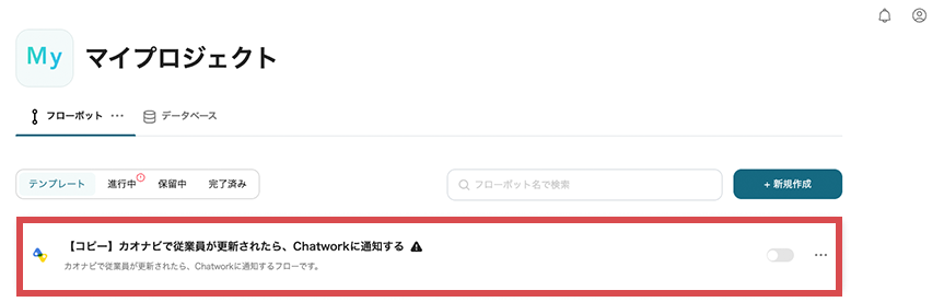 Chatworkの連携を設定していきます。テンプレートの2番目のプロセスをクリック!
