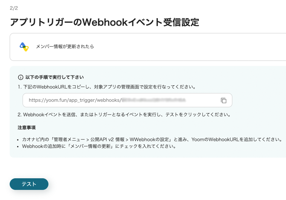 (2/2)アプリトリガーのWebhookイベント受信設定