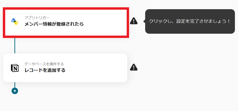 1. カオナビにメンバーが登録されたら、Notionにページを作成するフローです。