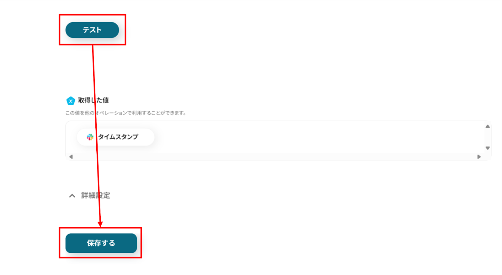 入力が終わったら「テスト」をクリックし、エラーが発生しなければ「保存する」をクリックします。