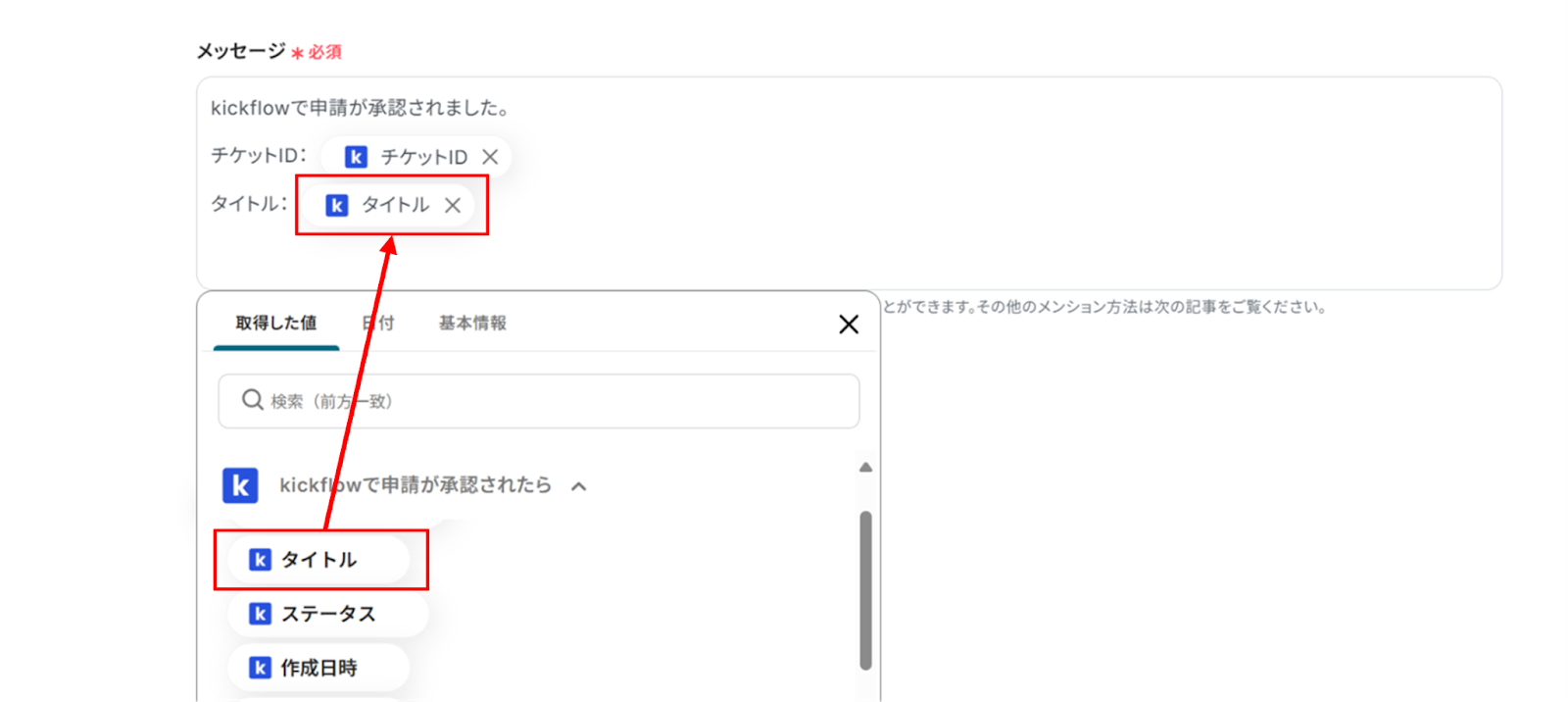 画像のように取得した値を使うことで、kickflowの情報を引用することができます!