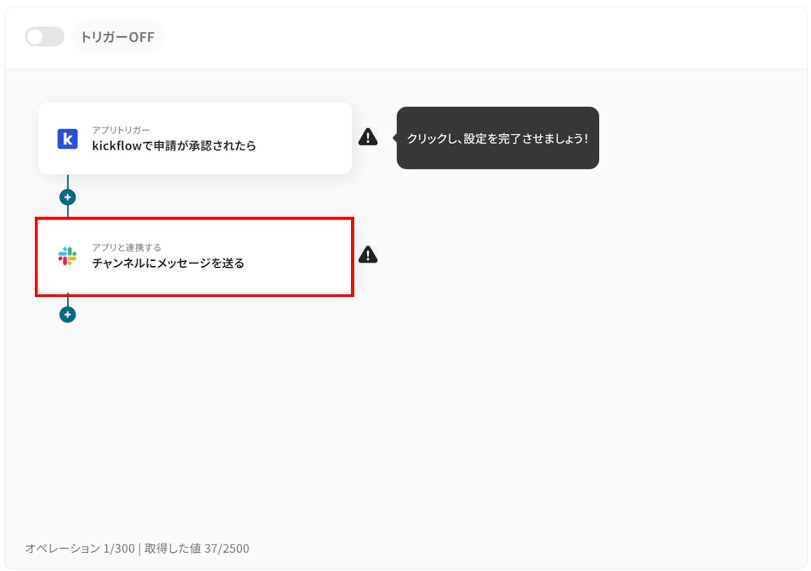 アプリトリガーの「kickflowで申請が承認されたら」をクリックします。