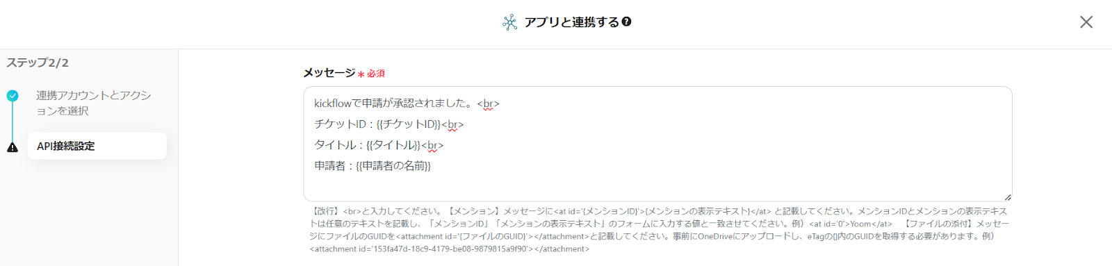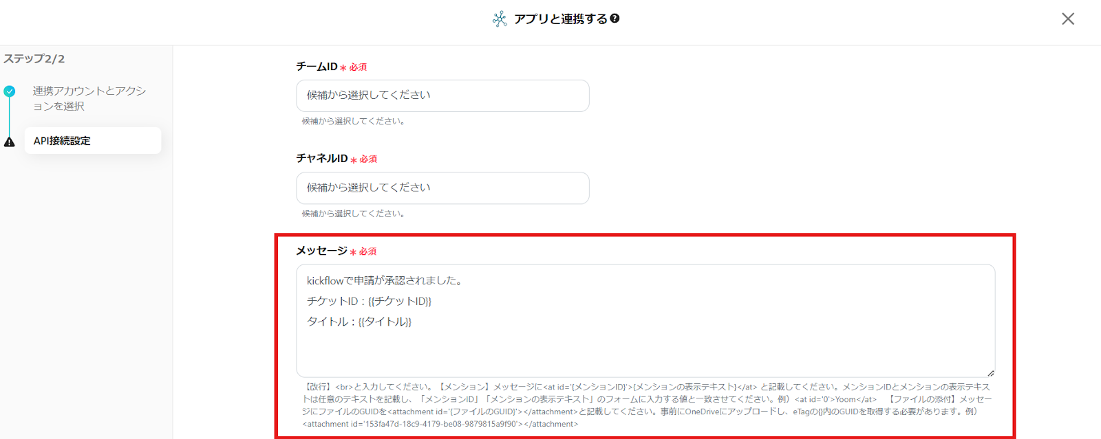 Microsoft Teamsへ投稿する際の内容を設定します。