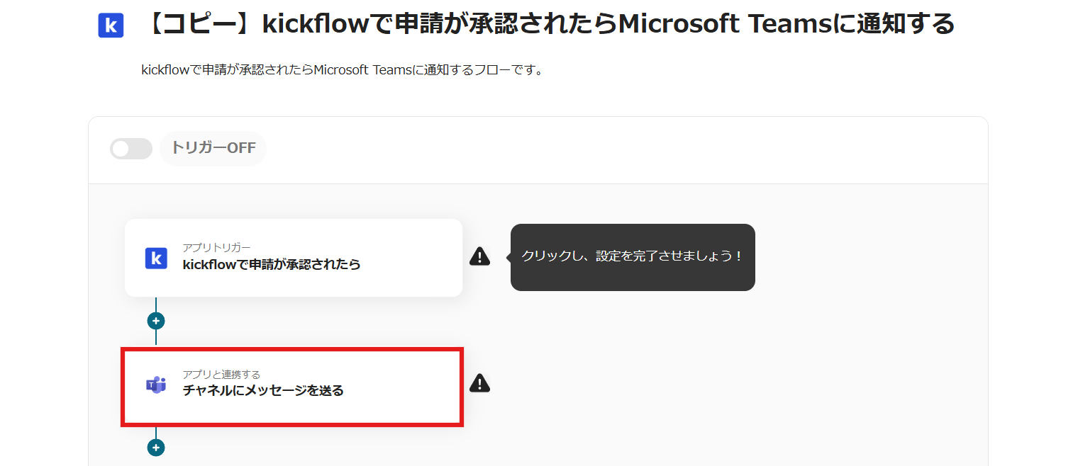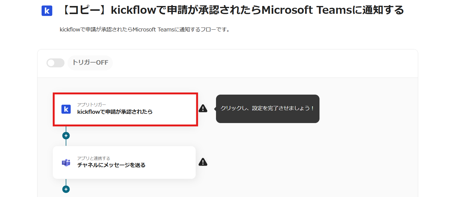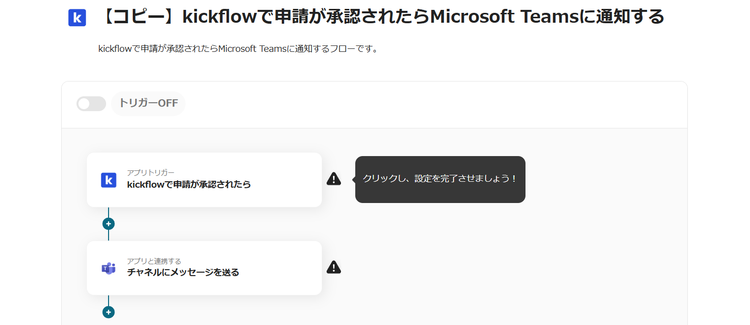 「【コピー】kickflowで申請が承認されたらMicrosoft Teamsに通知する」をクリックします。
