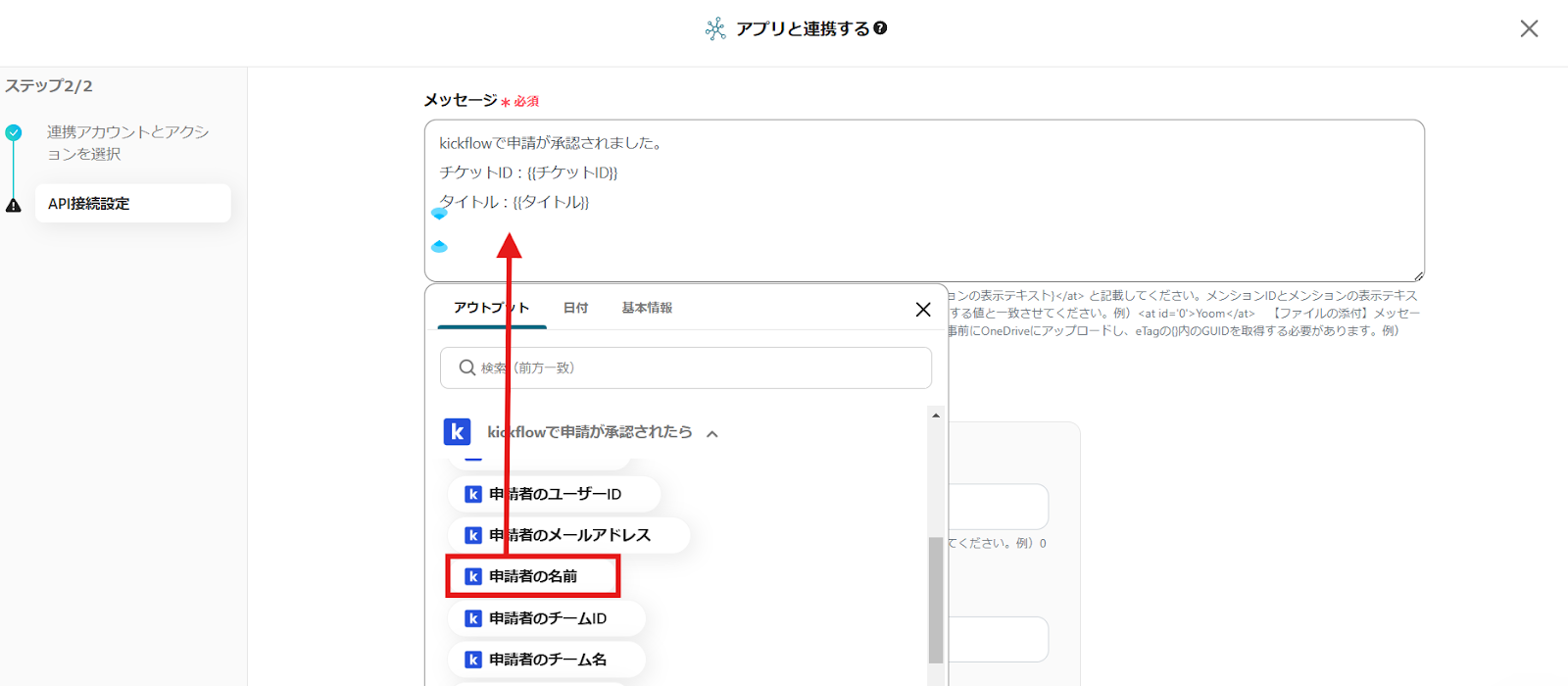 Microsoft Teamsに通知したいデータをクリックして挿入しましょう。