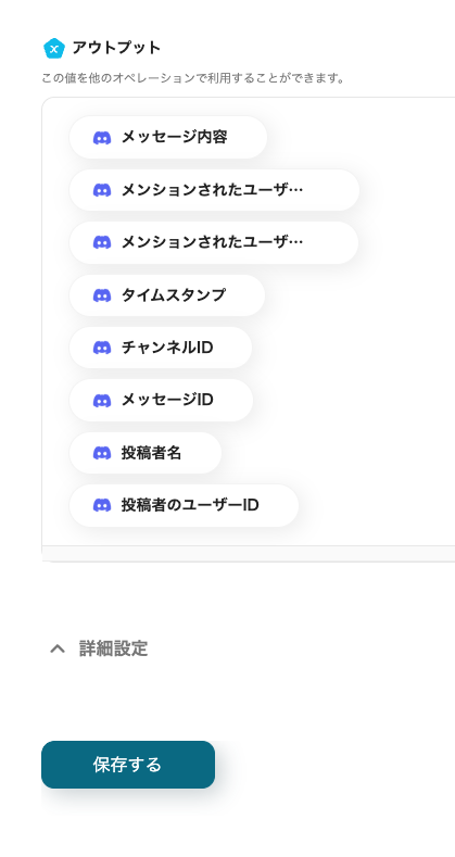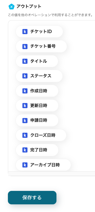 アウトプットの情報も確認し、問題なければ「保存する」をクリックしてください。