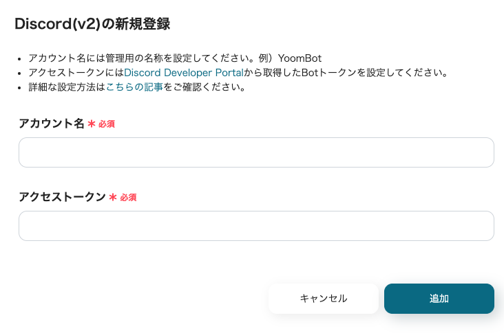 「アクセストークン」は、Discord Developer Portalから取得したトークンを設定してください。