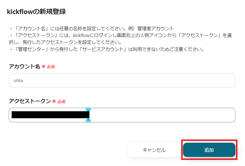 アクセストークンはkickflowのページから簡単にコピペできます!