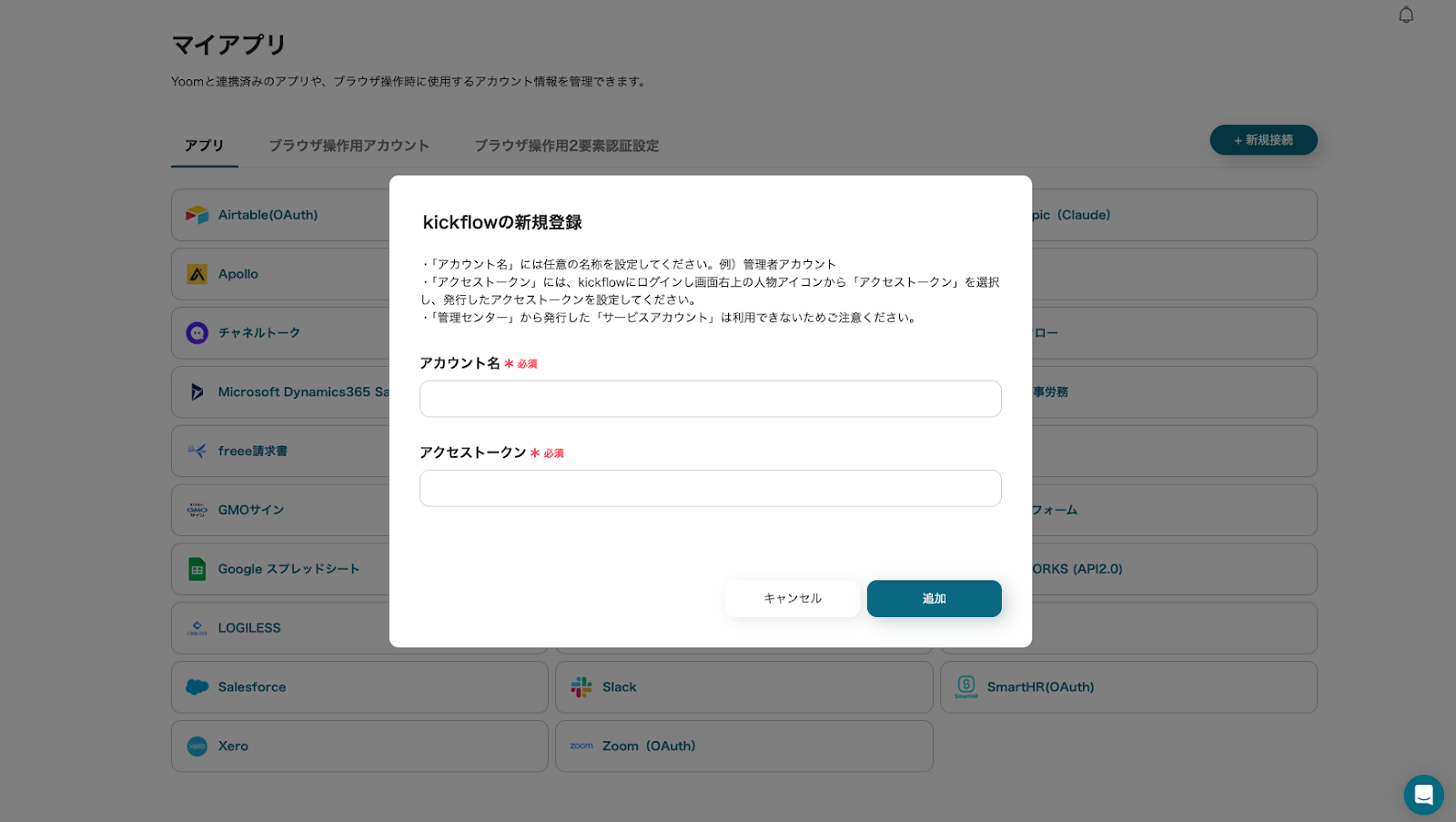 設定後に「追加」をクリックすると、kickflowのアプリ連携が完了します。