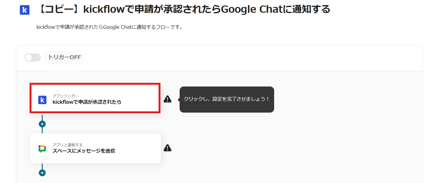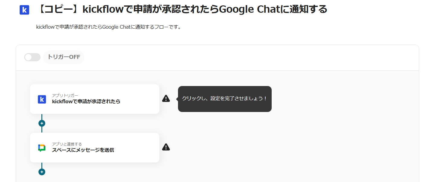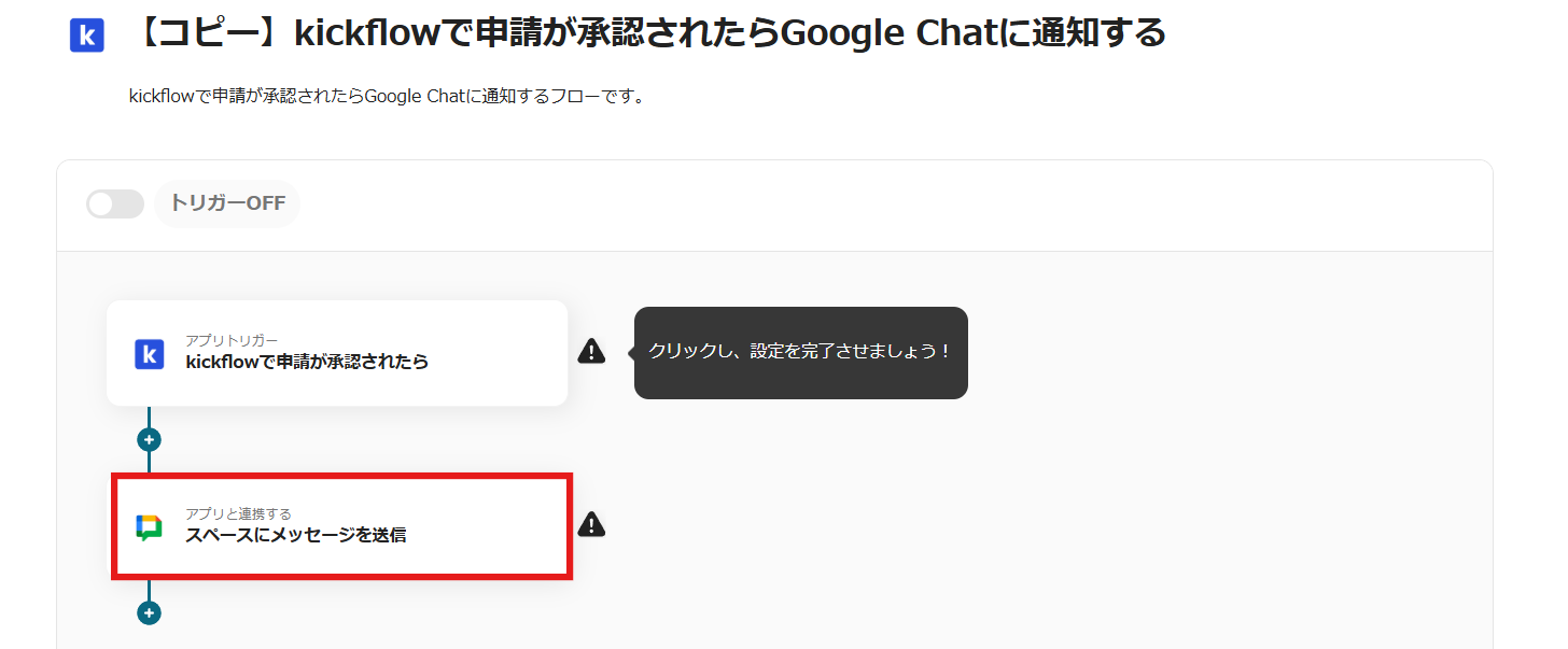 「【コピー】kickflowで申請が承認されたらGoogle Chatに通知する」をクリックします。