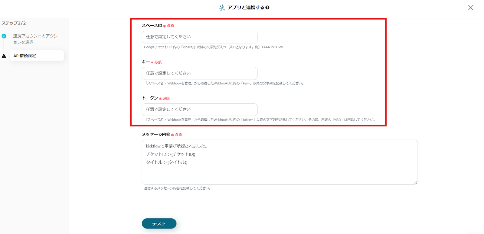 ・kickflowとGoogle Chatをマイアプリ連携