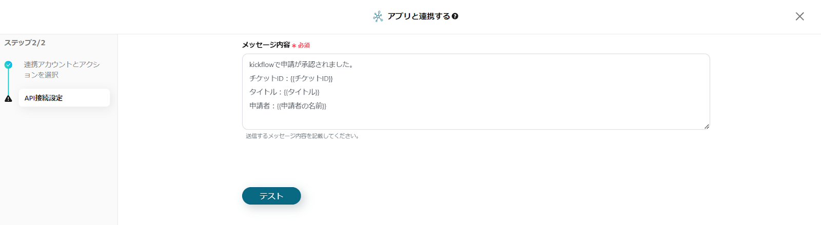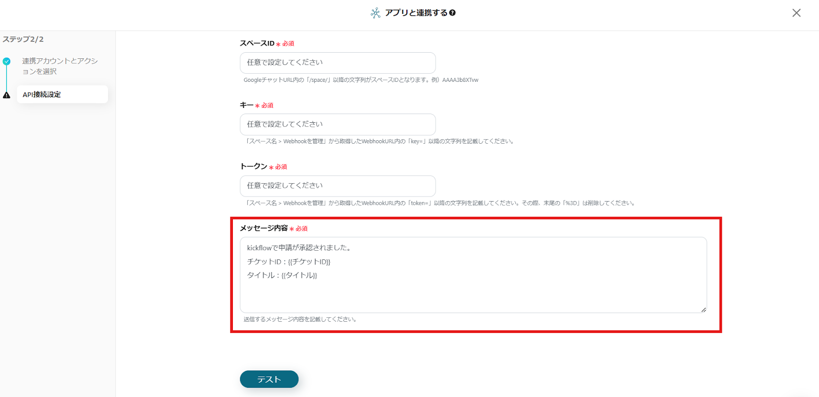 Google Chatに送信するメッセージの内容を設定します。