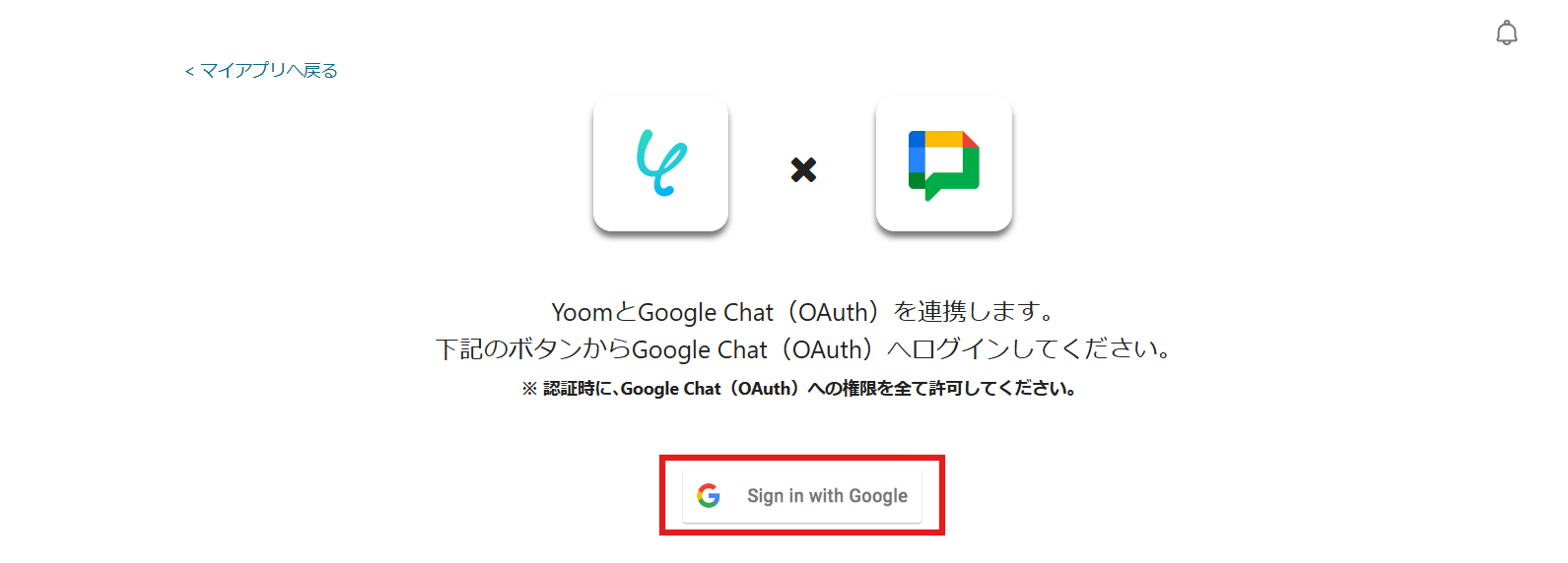 検索ボックスにGoogle Chatと入力し、Google Chat(OAuth)のアイコンをクリックします。