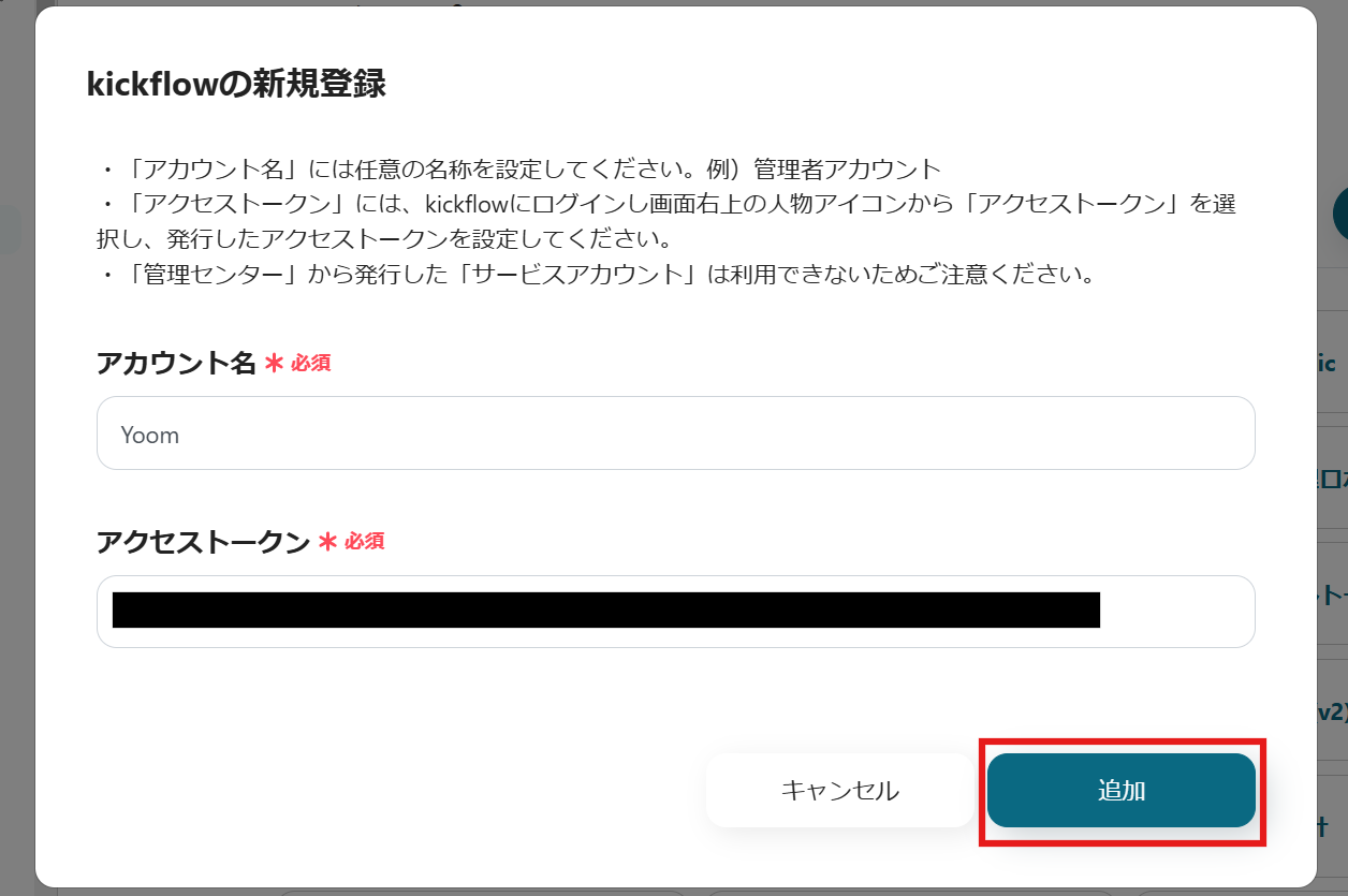 Yoomの画面に戻り、アクセストークンをペーストしてください。