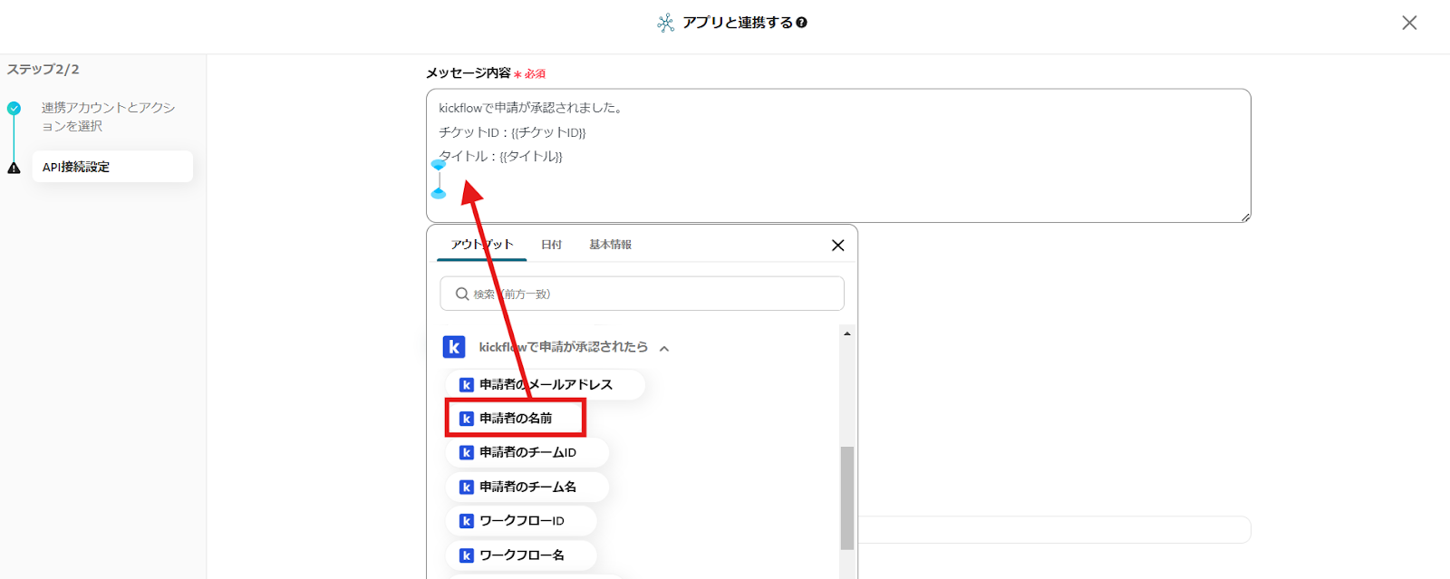 Google Chatに通知したいデータをクリックして挿入しましょう。