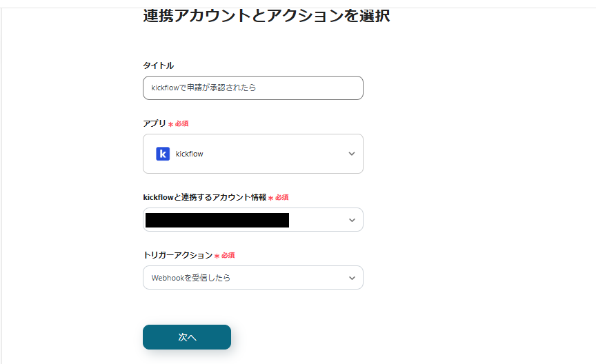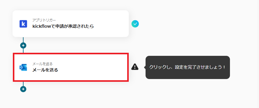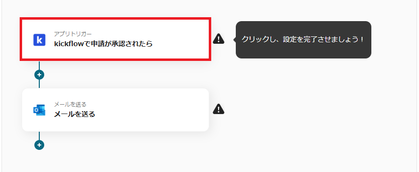 まず、「kickflowで申請が承認されたら」を設定していきます。