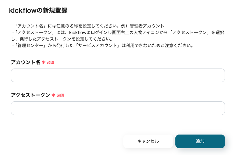 最後に「追加」をクリックして、kickflowのマイアプリ連携を完了しましょう。
