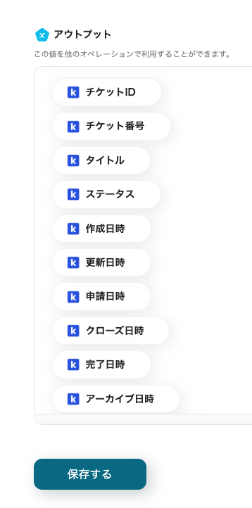 アウトプット情報を確認したら「保存する」をクリックしてください。