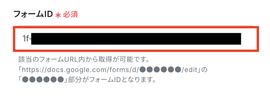 次に、連携したいGoogleフォームの「フォームID」を入力します。