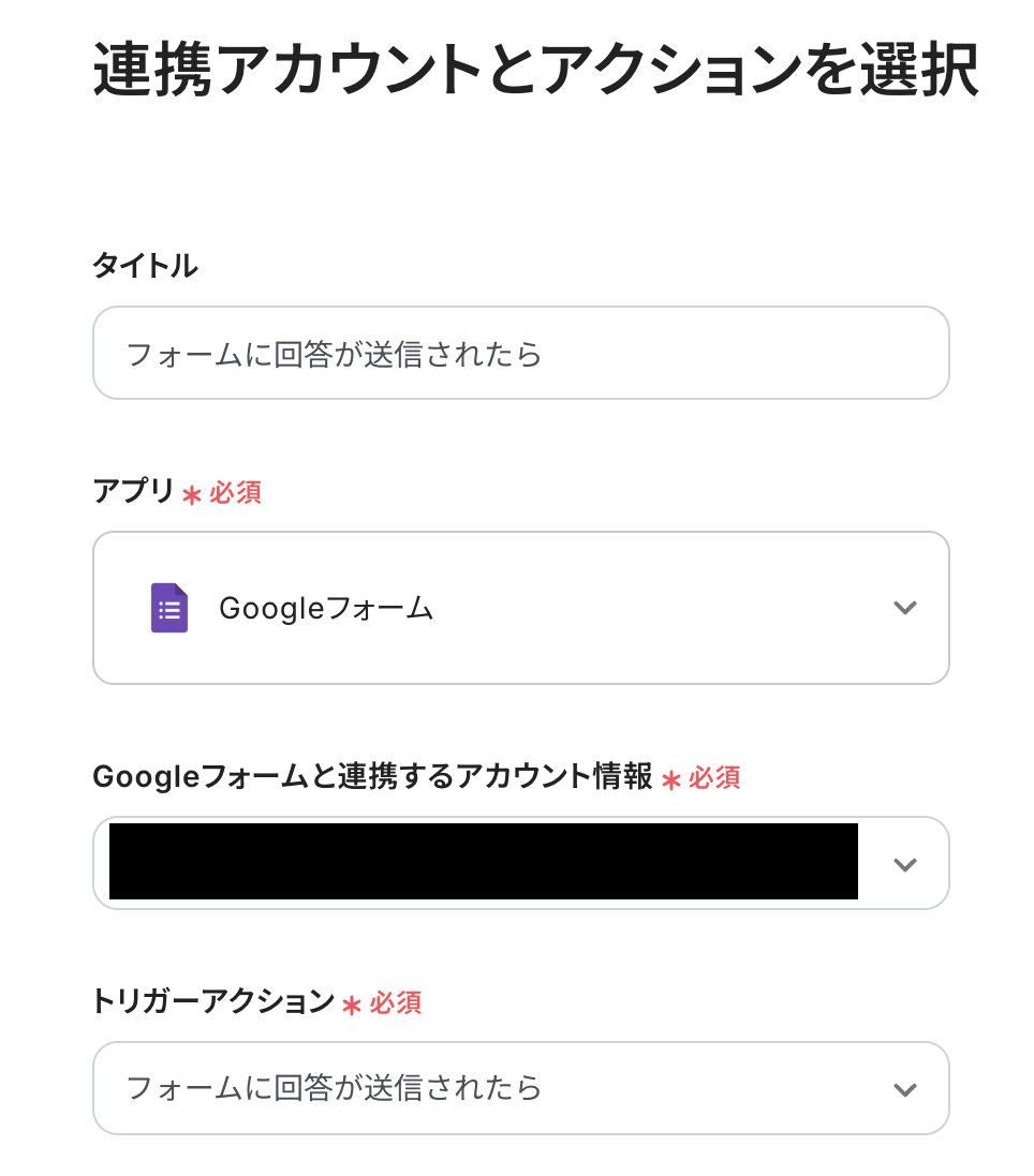 「トリガーアクション」:「フォームに回答が送信されたら」を選択