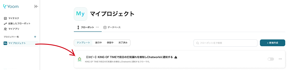 ここからは、「KING OF TIMEに情報が登録されたらChatworkに通知する」自動化の設定方法を、Yoomのフローボットテンプレートを使って解説します。