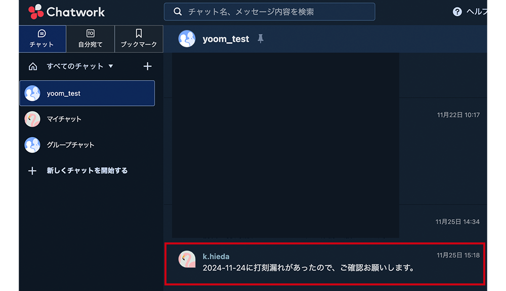 KING OF TIMEから取得した勤怠データをChatworkで一元的に確認できます。これにより、分散拠点や複数チームの勤怠状況を簡単に把握し、部門長が全体を効率よく管理できる仕組みを提供します。