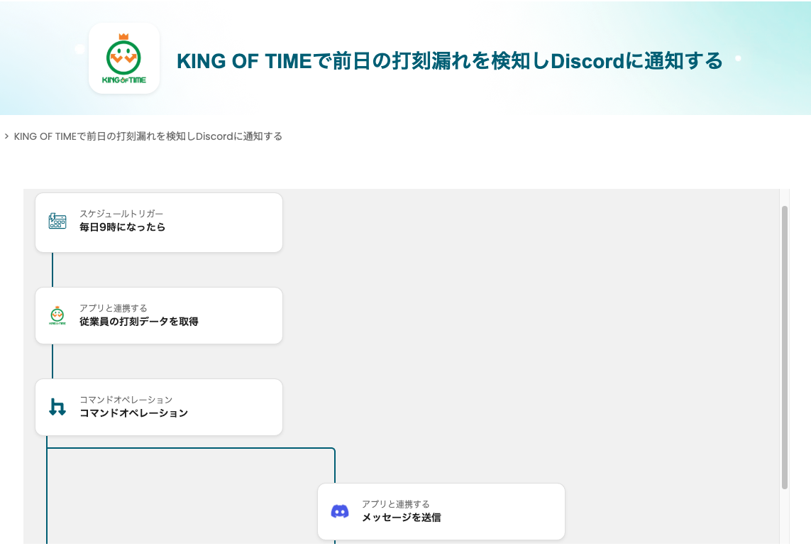 KING OF TIMEで前日の打刻漏れを検知しDiscordに通知するフローを導入することで、打刻管理がより効率的かつ正確になります。