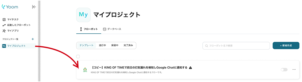 マイプロジェクトにテンプレートがコピーされます。マイプロジェクトは左のメニューバーからアクセスできます。