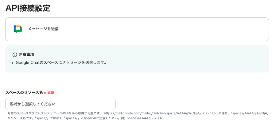 こちらでは打刻ができていなかった場合の定型文を作成しGoogle Chatに送る設定を行います。