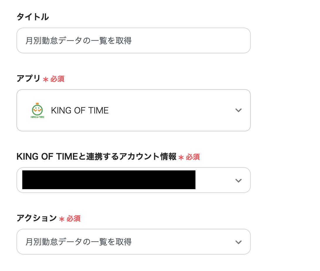(1)次に、2つ目のアクション「月別勤怠データの一覧を取得」をクリックします。