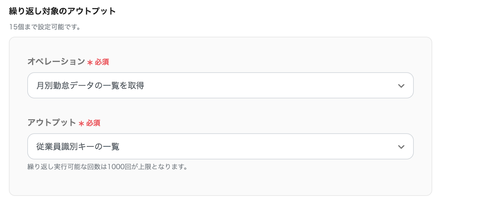 (繰り返し対象のアウトプットは、15個まで設定可能です。)