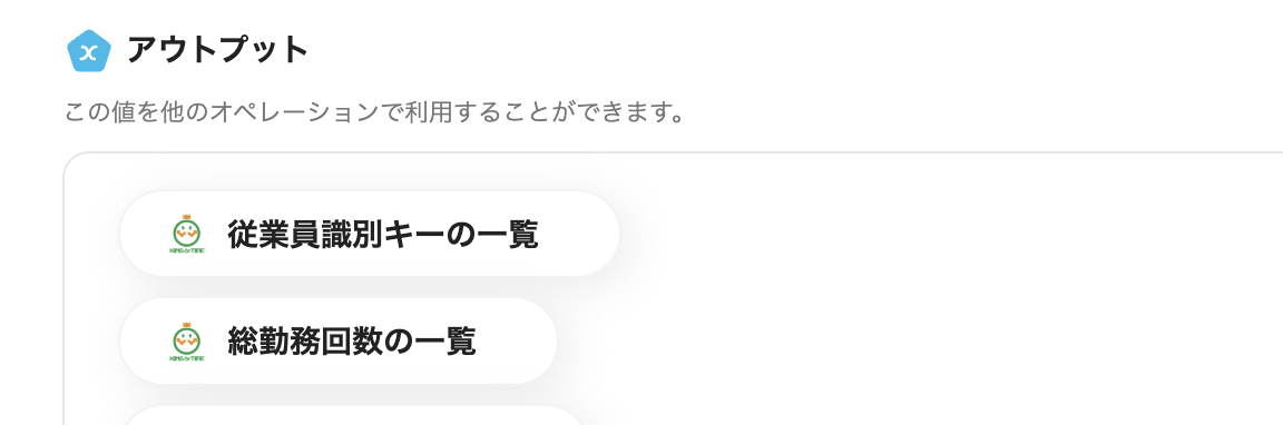 アウトプット情報は、「この値を他のオペレーションで利用することができます。」という注釈の通り、この後のステップで引用・活用できます。