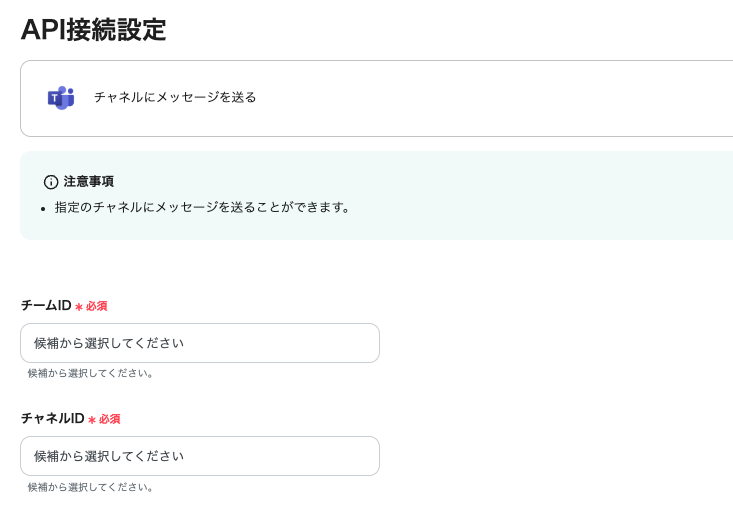 - 編集欄をクリックするとプルダウンが開き、連携したMicrosoft Teamsのスペース名が表示されます。メッセージを送るスペースを選択すると、IDが引用されます。