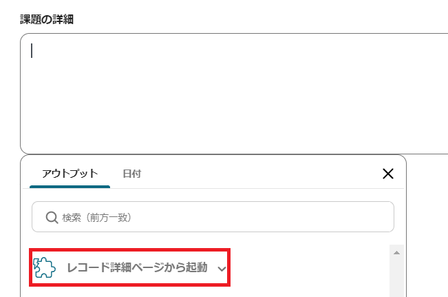 その他も任意の内容にしていくのですが、先ほど取得したアウトプットも選択可能です。