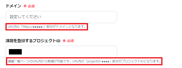 ドメインやプロジェクトIDは画面の赤枠にそってコピペでOKです。