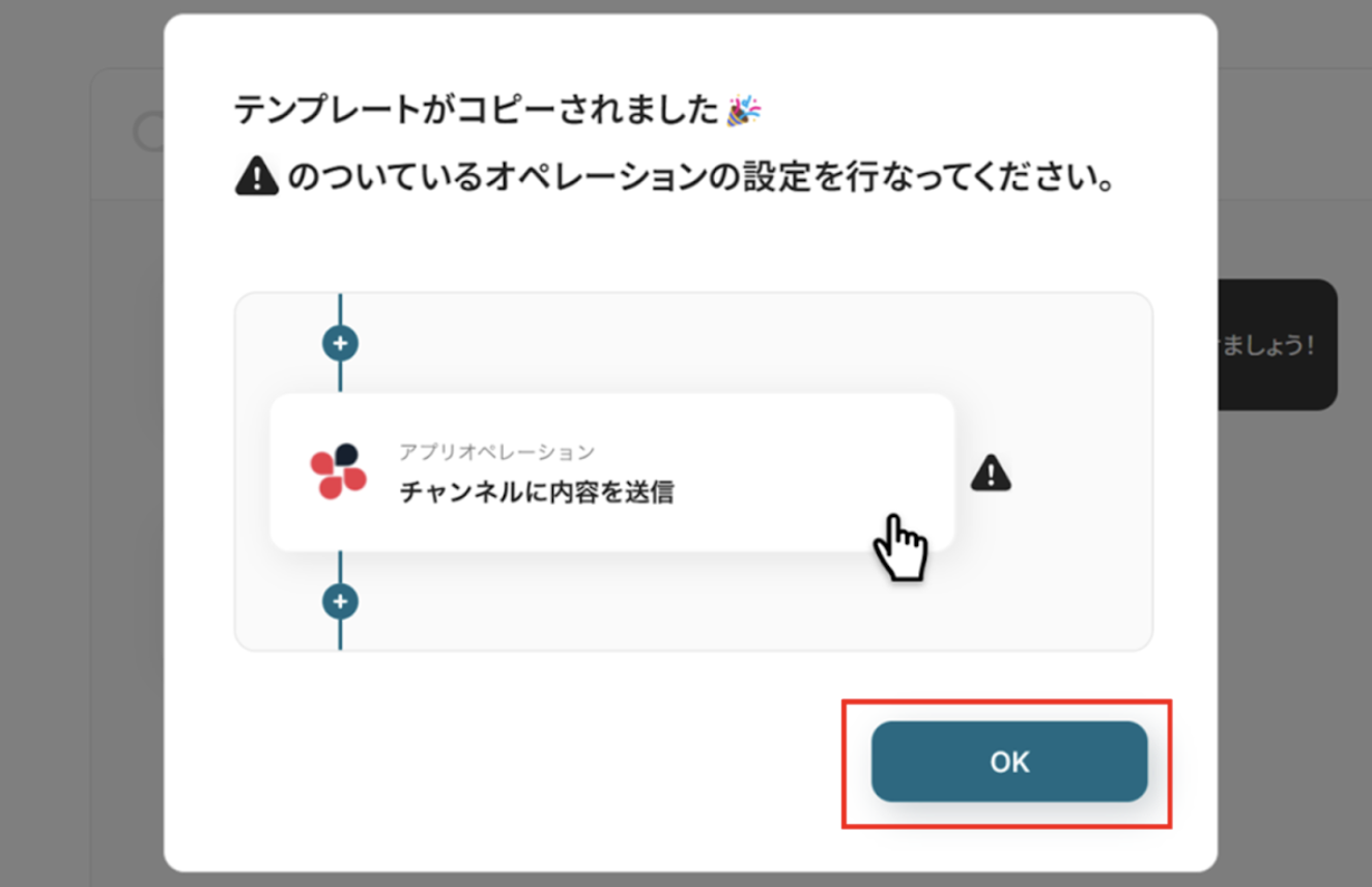 以下のように表示されるので、OKを押して設定を進めていきましょう。