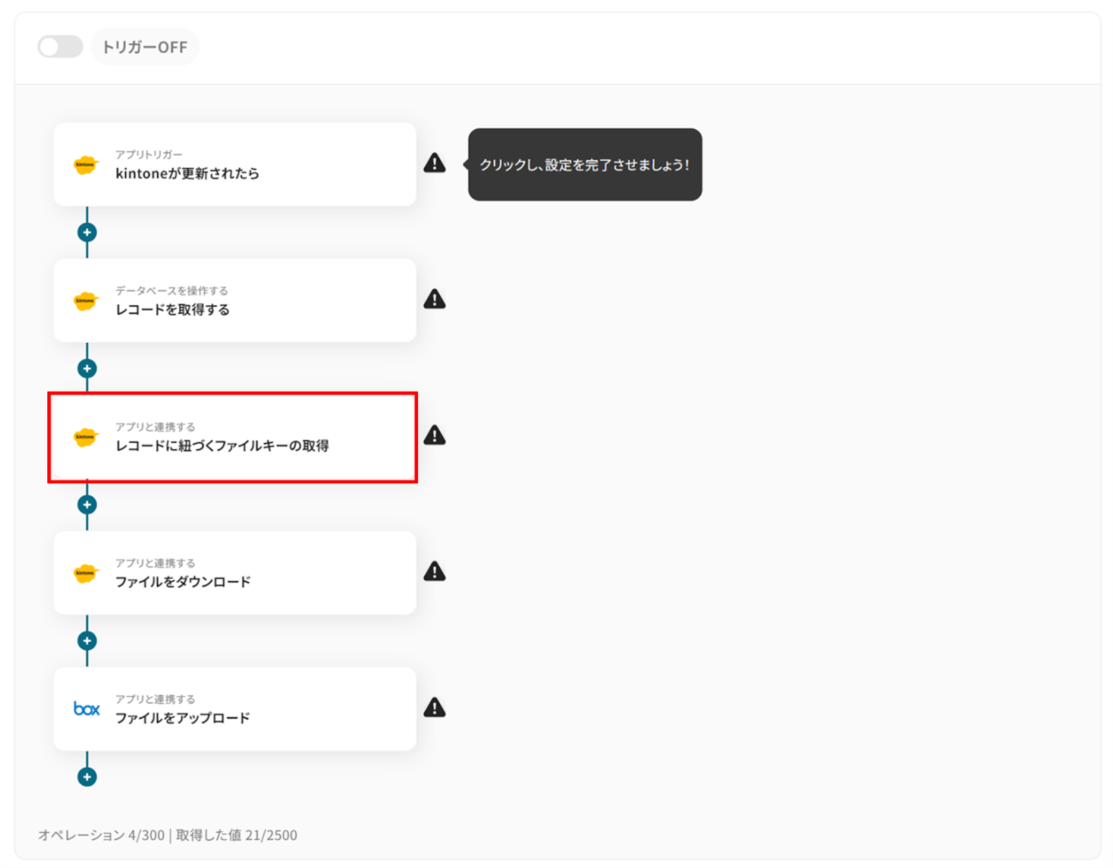 (1)次にkintoneと連携して、レコードに紐づくファイルキーを取得します。