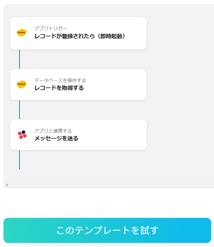 また、Chatworkに送信されたメッセージをkintoneに追加することもできます。