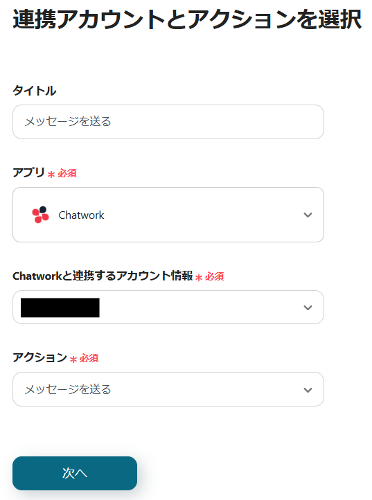 2.Chatworkと連携するアカウントを確認し、「次へ」をクリックします。