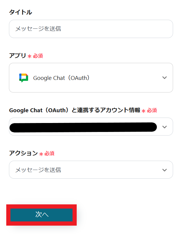 ※Google Chatとの連携はGoogle Workspaceの場合のみ可能です。詳細はGoogle Chatでスペースにメッセージを送る方法を参照ください。
