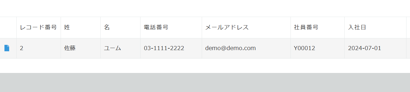 kintoneのアプリに進み、以下のように従業員情報を登録します。