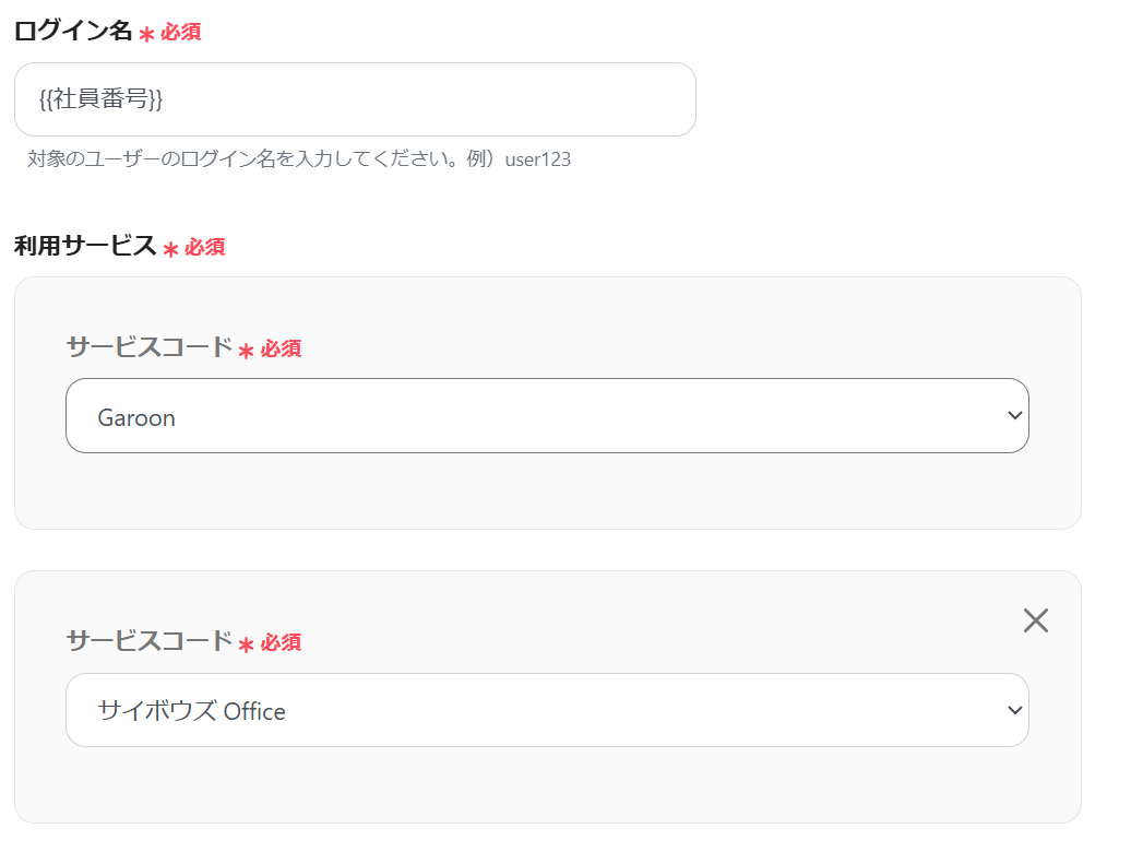 ログイン名や利用サービスはデフォルトで設定してありますが、選択肢に出てくるものであればカスタマイズ可能です。