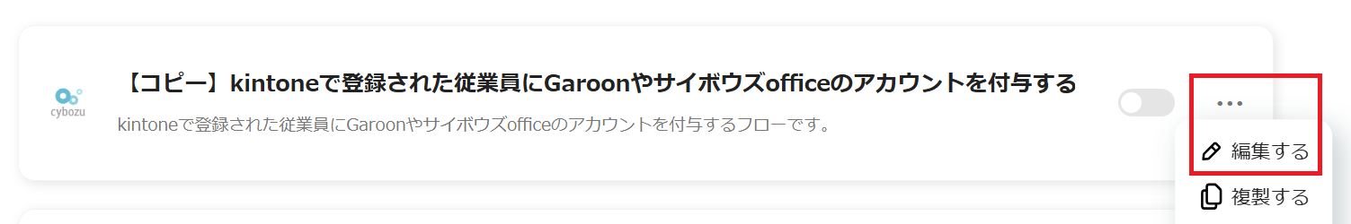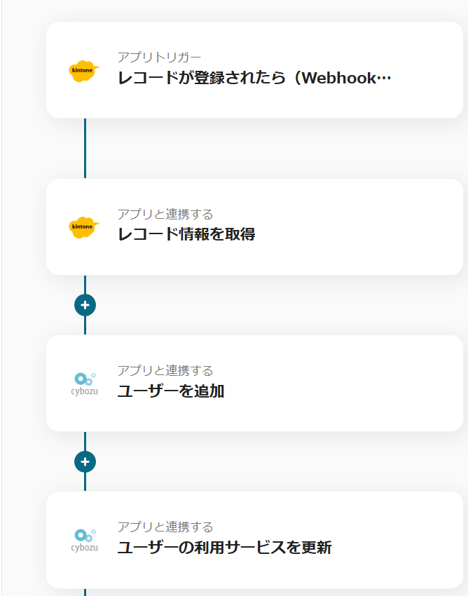 マイアプリ登録が完了したら、「kintoneで登録された従業員にGaroonやサイボウズ Officeのアカウントを付与する」フローボットを作成していきます。