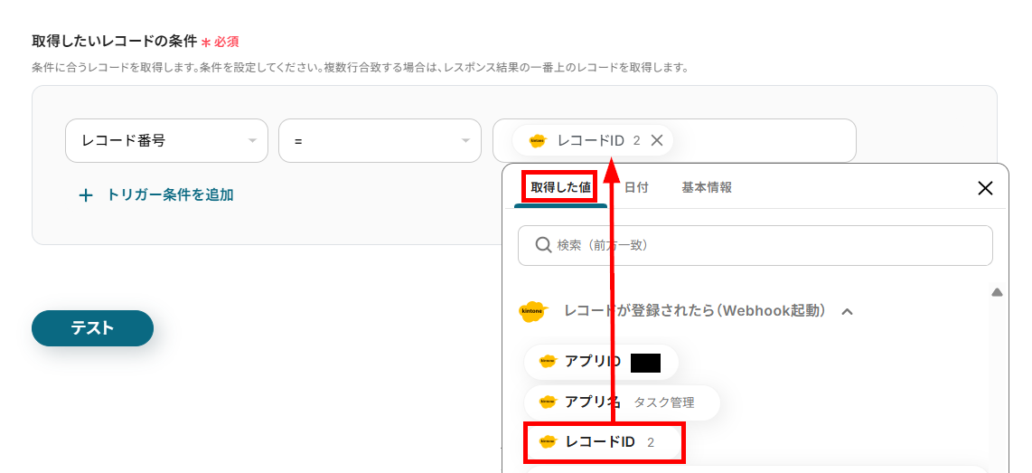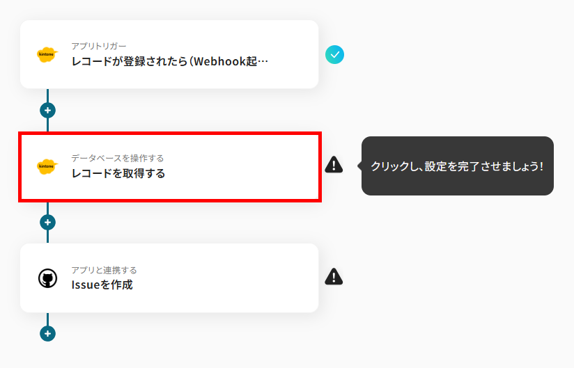 次に、kintoneに追加したレコードの詳細情報を取得する設定をします。