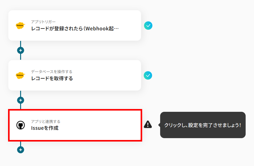 「kintoneにレコードが追加されたら、GitHubでIssueを作成する」ワークフローは、kintoneに登録された情報を即座にGitHubへ反映させます。