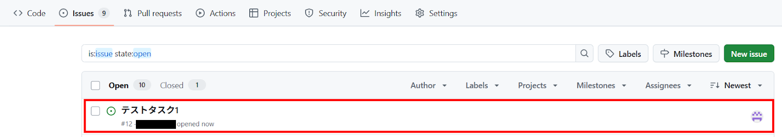 テストが成功すると、GitHubにIssueが作成されるので確認してください。
