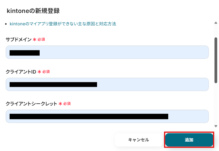 また、kintoneのマイアプリ登録がうまくいかない場合は、以下のリンク先を参照してください。
